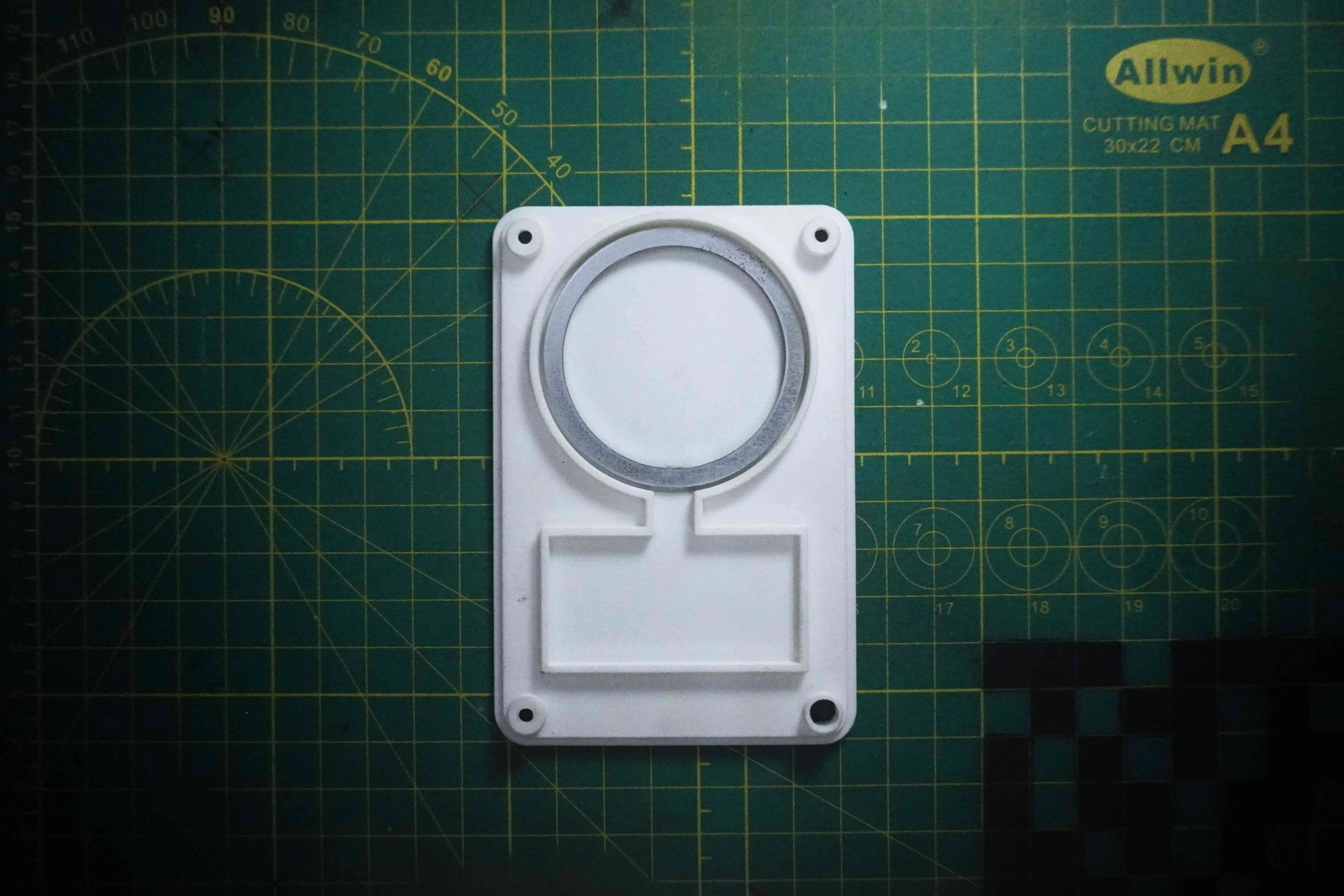 The dock’s transmitter PCB had a few LEDs that served as status indicators, lighting up in different patterns—pulsing when charging and steady when in “sleep mode.” I could use this signal to play something on the display that would reflect the charging status, adding a subtle visual effect to the dock. While I’m not ready to implement the display functionality just yet, I incorporated space for it in the design. For now, I’ll install a dummy display to get a sense of the final aesthetic. Additionally, I added some weights to the base for stability, rubber feet for extra grip, and exposed screws on the dock face to complement the CMF Phone’s industrial style – which will always remind me where this project started from.